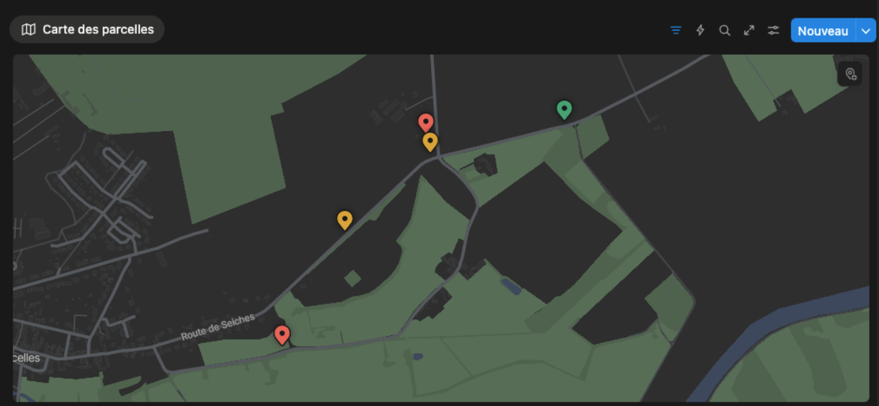 Visualiser vos parcelles sur une carte avec un code couleur en fonction de si elles sont occupées ou au repos et accéder à l'ensemble des informations d'une parcelle depuis la carte, en un clic.